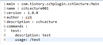 적용을 하기전에 plugin.yml에 commands 라는 항목을 추가해야 합니다.