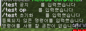 사용법 - /test 공지 [할말] /test op [플레이어] /test 초기화 [플레이어] 와 같이 작성해놓으면 되겠죠?