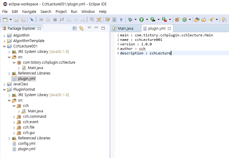 다음과 같이 plugin.yml이라는 파일을 생성해주세요.
