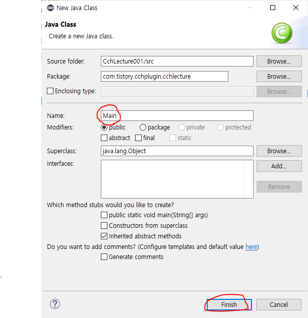 main의 경우 지금 작성하고 있는 패키지.Main으로 작성하셔야 합니다.