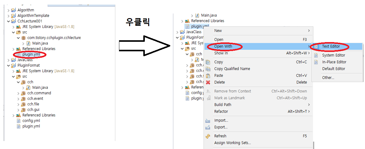 오늘은 저번에 세팅한 개발환경 ( eclipse )를 이용하여 간단한 플러그인 제작을 해보겠습니다.
