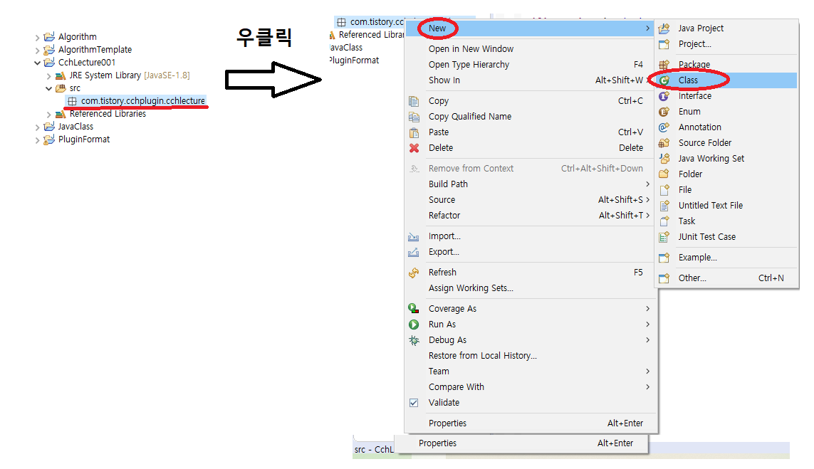 패키지 생성이 완료되었습니다. 다음은 클래스를 생성하겠습니다.